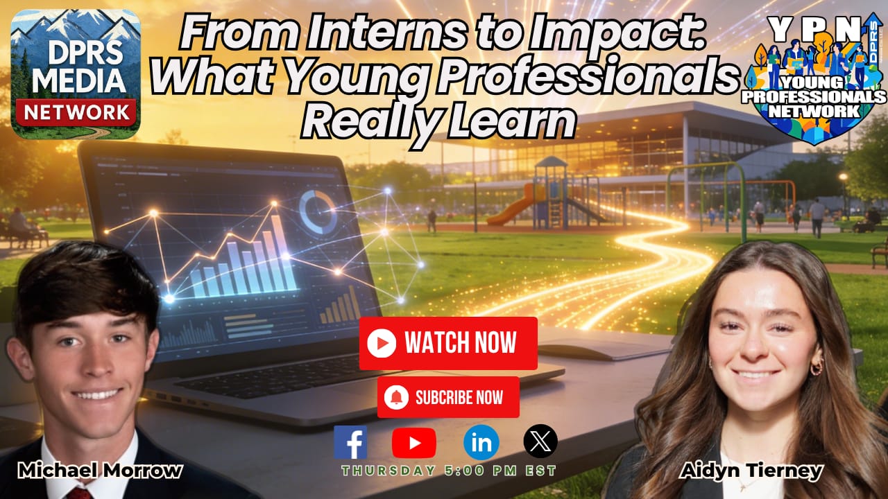 In this episode of the YPN on The Daily Parks and Rec Show, Aidyn Tierney and Michael Morrow reflect on their DPRS internship experience, lessons learned, career goals for 2026, and what surprised them most about the Parks & Recreation industry.